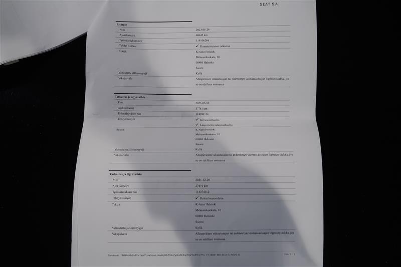 | Huoltokirja (juuri huollettu ja jakohihna vaihdettu) |